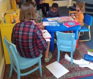 Children are always welcome in worship! There is a PRAYground near the front, with books, art, and quiet activities to keep little hands busy while ears listen, and close to the action to keep kids engaged. We also have a nursery with a caregiver just outside the front sanctuary door, should that be your preference.